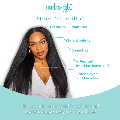 ‘Camilla’ V-Part Unit – 24” Kinky Straight Human Hair Wig for Natural Texture