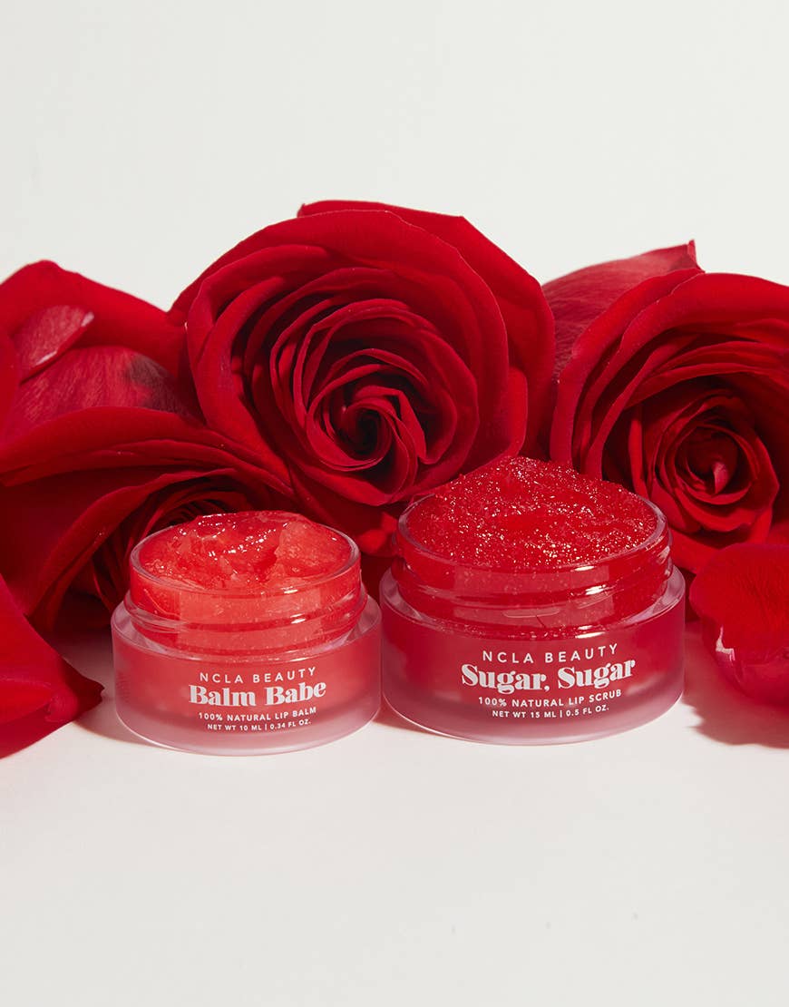 Balm Babe Red Roses: A rich, soothing lip balm made with shea, cocoa, and avocado butters, plus coconut oil to lock in hydration and leave lips smooth and soft.